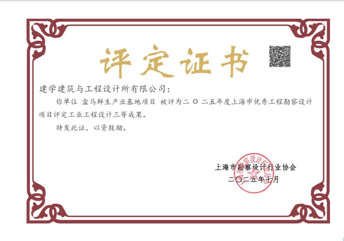 ? ? ? 2025年度上海市優秀工程勘察設計項目已揭曉,由我司設計的盒馬鮮生產業基地項目榮獲工業工程設計三等成果。